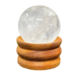 Clear Crystal Quartz Ball | Sphere Ball | Crystal Ball with Wooden Stand for Reiki & Crystal Healing (80 Grams Approx) (1 Pc)