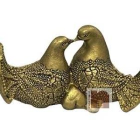 Feng Shui Love Birds | Mandarin Ducks Showpiece in Polyresin (Oxidized Golden) (1 Pc)