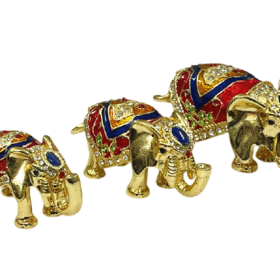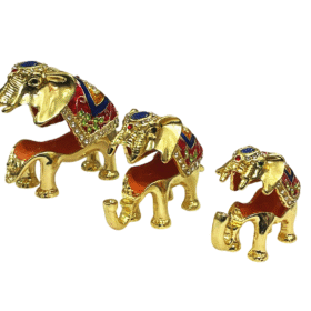 Feng Shui Bejewelled Elephant with Wish Fulfilling Compartments (3 Pcs Set)