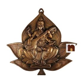 Goddess Saraswati Idol On Lotus Wall Hanging In Copper (41 Cms) (1 Pc)