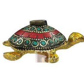 Feng Shui Vastu Tortoise | Turtle Showpiece in Metal with Multicolour Stones (1 Pc)