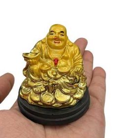 Feng Shui Laughing Buddha | Buddha Sitting On Coins with Ingot in Hand Showpiece (6 Cms) (1 Pc)