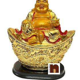 Feng Shui Laughing Buddha | Happy Man Sitting On Ingot (Height 12 Cms) (1 Pc)