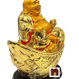 Feng Shui Laughing Buddha | Happy Man Sitting with Ingot (Width 14 Cms) (1 Pc)