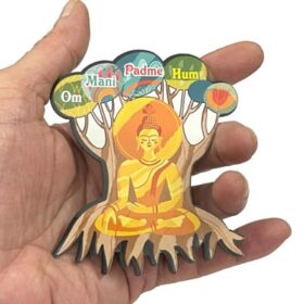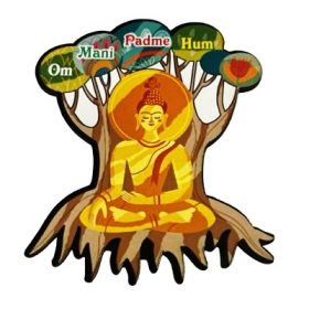 Magnetic Sticker | Om Mani Padme Hum in MDF Wood for Home Decoration | Fridge Etc (14 Cms) (1 Pc)