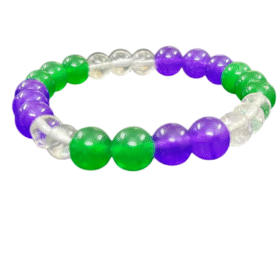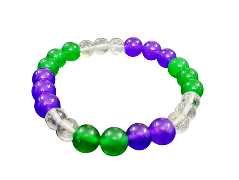 Amethyst,Green Aventurine & Crystal Quartz Round Beads Bracelet (8 MM Beads) (1 Pc) – The Combination of Amethyst, Green Aventurine and Clear Quartz is designed to support students and professionals alike. This bracelet is perfect for those who need a boost in concentration, productivity, and emotional balance.Green Aventurine is associated with a sense of optimism and positivity. It can help individuals maintain a positive outlook on life and attract positive energy. Some people uses Green Aventurine to boost self-confidence and self-esteem.