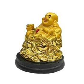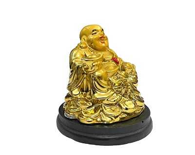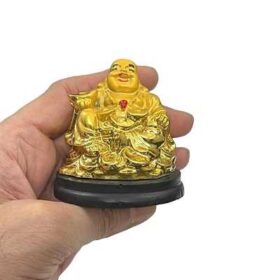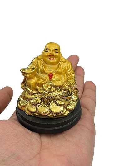 Feng Shui Laughing Buddha | Buddha Sitting On Coins with Ingot in Hand Showpiece ( 6 Cms ) (1 Pc)-This elegant Golden Buddha statue makes a thoughtful addition to any home. Crafted from durable cast resin with a lustrous gold finish, it radiates a sense of calm and wisdom. Measuring 6 Cms tall, it is a striking yet understated piece that will complement both traditional and modern interiors. Place it on a mantle, bookshelf, or side table to serve as a focal point for meditation and reflection in the living room, bedroom, or home office. Its intricate detailing and serene expression create an atmosphere of inner peace. This high-quality decorative accent is certain to be admired by visitors and owners alike for many years to come.