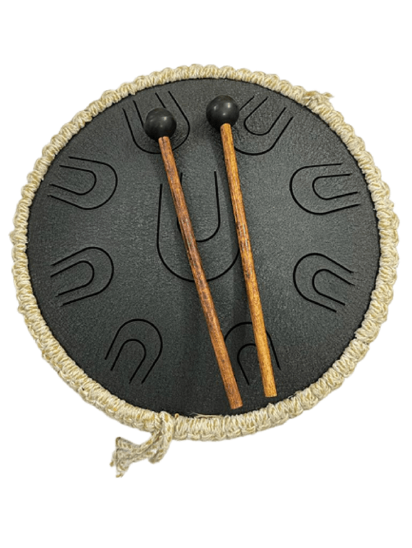 Numeroastro Happy Drum | Tongue Drum | Hand Pan Drum With 18 Notes With Rope Decoration (14 Inches Approx)- This Hapi | Happy drum is also called the instrument of happiness & a steel tongue drum. The tongues are scientifically cut into 8 different sizes and shapes and make an octave of melodious musical pitches and sounds, no matter which order you play in. The instrument is based on pentatonic scale which originated in ancient civilizations and is still used in us country music, indian traditional classical music, chinese music and blues. A special zen like musical instrument, the happy drum when played creates soothing meditative tones that relaxes both body and mind. This instrument is very useful and effective for yoga sessions, meditation classes, natural therapies and healing sessions. It is a very creative instrument and moreover extremely simple to play. You can play it with two run rubber mallets provided along with the instrument or with your fingers. Off course, if you are a professional, you can start simply start playing with your fingers just like you play a bango or tabla. However, if you are beginner it is recommended that you first play with the mallets. It comes with a sturdy, handy bag that allows you to take it anywhere you go. Rubber feet are provided at the bottom for the drum to sit straight and create best sound.