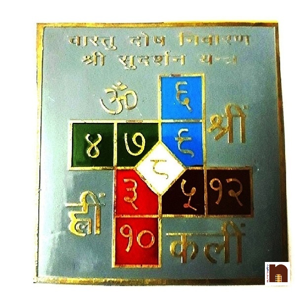 Numeroastro Vastu Dosh Nivaran Shri Sudarshan Colour Yantra (Pack of 1)-By Numeroastro this yantra one is blessed with health, wealth and happiness, good fortune and fame.It wards off evil effects such as fear of ghosts, accidental death and diseases etc.By worshipping this Vastu Dosh Nivaran Shri Sudarshan Yantra one is free from miseries and troubles.It also ensures freedom from fear of death, chronic diseases and grave dangers.By worshipping this yantra one is blessed with siddhi, success, prosperity and it helps in all direction and every sphere of life. It is made up of Maha Mrutyunjay Yantra, Matsya Yantra, Kal Sarp Yantra, Ganpati Yantra, Vastu Yantra, Rahu and Ketu Yantra, Shani Yantra, Vahan Durghatana Yantra, Vashi Karan Yantra, Nav Grah Navdurga and Bagla Mukhi Yantra. Beej Mantra: Om Hraum Joong Sah. Om Bhur Bhuvah Swah. Om Trayambakam yajamahe Sugandhim Pushtivardhanam Urvarukmiv Bandhanam Murtyormukshiya Mamritat,Om BhurBhuvah Swah Om Hramm Joong Sah Om.