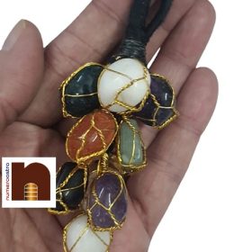 7 Chakra Tumble Stones For Car Hanging & Door Hanging For Chakra & Crystal Healing (1 Pc) – All The Tumble Stones Are Very Beautifully Wrapped In Golden Colour Metal Wire. For Car Hanging & Door Hanging.