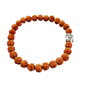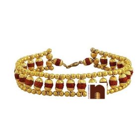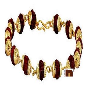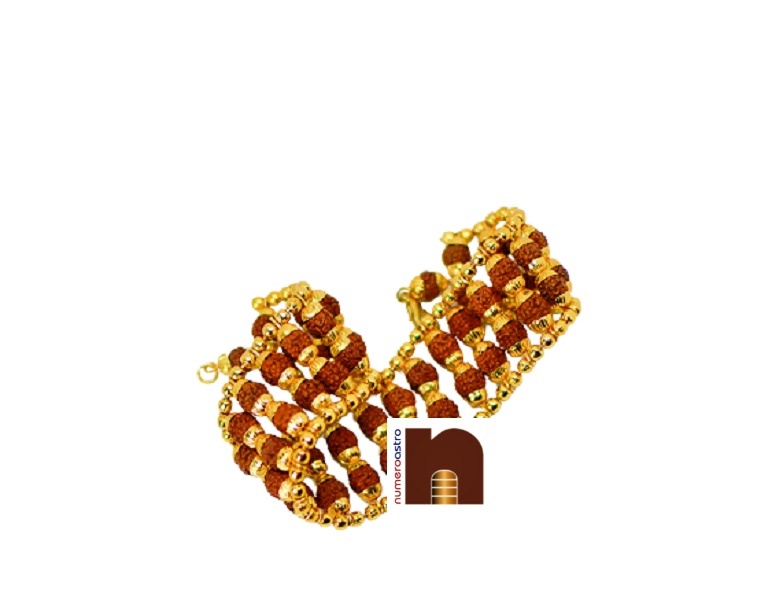 Numeroastro 5 Mukhi Rudraksha Bracelet With Designer Gold Plated Caps (2 Lines)-This bracelet is made of five mukhi rudraksha beads .Five Mukhi Rudraksha are said to be very effective for controlling high blood pressure as well as a host of other diseases, as per the ancient vedic texts. A Rudraksha with five faces represents Lord Shiva/ Rudra himself. Its name is Kalagni. It is said that it bestows all sorts of salvation & achievement of desires.