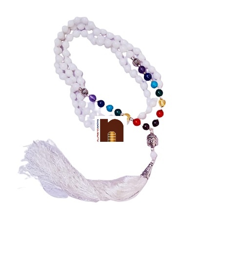 7 Chakra White Agate | Hakik Mala With Agate Beads | Budha Charm Beads For Jaap & Meditation For Men & Women (6 MM)(1 Pc) – This stone can be used in place of the precious stones with equally effective results. For removing the bad planetary effects, a person should wear the Agate mala of the colour which belongs to the planet.. Agate is a symbol of protection, courage and success. Length of this Mala – 35 inches approx. No. of Beads – 108 + 1 This White Agate Mala should be used to pacify the malefic effects of Planet Venus or to strengthen this planet in ones Horoscope. This mala can be worn by persons having their zodiac signs as Taurus (Vrashabh Rashi) and Libra ( Tula Rashi ) with wonderful results.