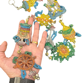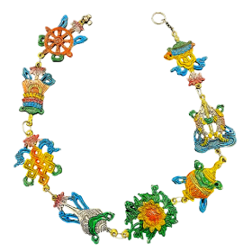 numeroastro 8 Auspicious Symbols Of Tibetan Buddhism (Tashi Tagye) 8 Lucky Signs Of Buddhism In Aluminium Wall Hanging (34 Inches) (1 Pc) āĀ Bring the auspicious symbols of Tibetan Buddhism into your home with this stunning aluminium wall hanging. Measuring 34 inches in size, this decorative piece showcases the 8 Lucky Signs of Buddhism, also known as the Tashi Tagye. Handcrafted with intricate detailing, it is a beautiful representation of the ancient Buddhist traditions. Hang it prominently in your living space to invite positive energy and good fortune. Crafted from durable aluminium, this wall hanging is designed to last for years to come. Whether youāre a practising Buddhist or simply appreciate the rich cultural heritage, this piece will add a touch of spirituality and elegance to your decor. Embrace the timeless wisdom and blessings of Tibetan Buddhism with this captivating wall hanging.