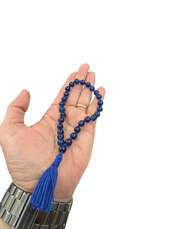 numeroastro Blue Hakik | Agate Round Beads Mala for Jaap (8 MM) (27 Beads) (1 Pc) – Blue agate is a semi-precious gemstone that is believed to have many healing properties. It is said to have calming and soothing effects, and can be used to promote physical and emotional balance.