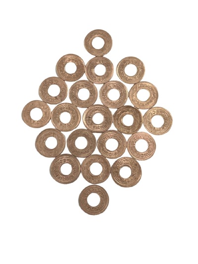 Copper Coins | Tambe Ke Sikkey With Hole For Puja (21 Pcs) – The Copper Coins Has Been Used In A Lot Of Ceremonies And Yagnas. Furthermore, it is Utilised In The Grih Pravesh Pooja. In astrology.