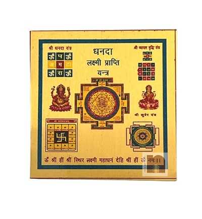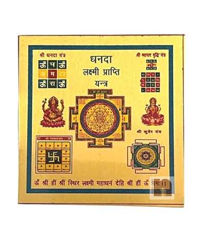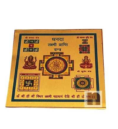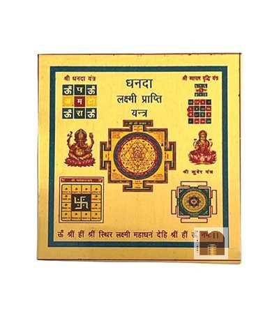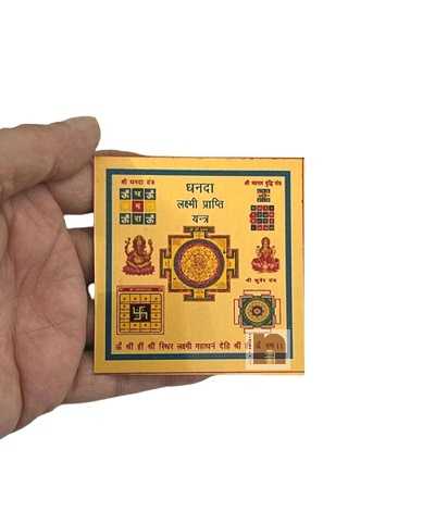 Dhanda Laxmi Prapti Yantra In Metal (Colour Yantra) (3 Inch) (1 Pc) – Very Beautifully Handcrafted Colour Yantra In Gold Plated Metal. For Worshiping & Blessings Of Goddess Laxmi. For Home-Temples, Puja-Ghar, Purses, Wallets, Homes, Offices Etc.