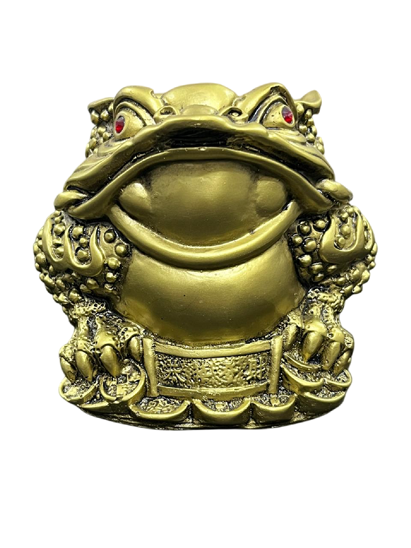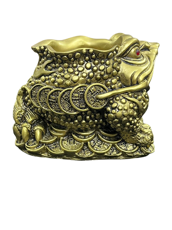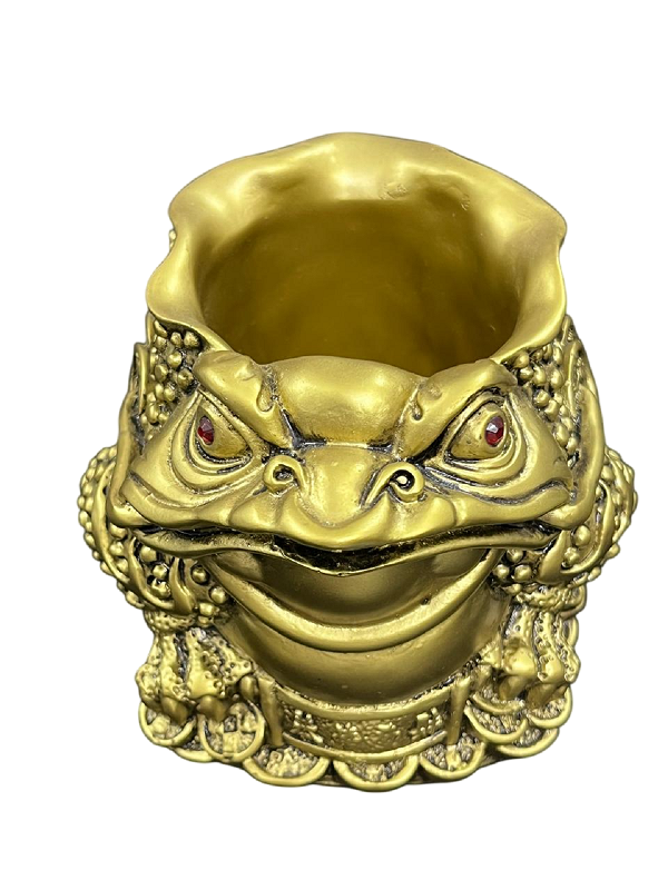 numeroastro Feng Shui Frog Pen Stand | Wealth Frog Pen Stand In Polyresin (Height-10 Cms) (1 Pc) – Bring prosperity and organisation to your workspace with this exquisite Feng Shui Money Frog pen stand. Standing 10 centimetres tall, this beautifully crafted polyresin piece features a golden wealth frog (also known as Chan Chu) adorned with intricate Chinese coin motifs and textured detailing. The frog’s wide-open mouth serves as a practical holder for your pens, pencils, and other stationery items, while its decorative body showcases detailed scaling, ruby-red eyes, and traditional Chinese symbols. The base is embellished with ancient coin designs, adding to its authentic appearance. This versatile desk accessory doubles as an eye-catching showpiece that combines functionality with traditional Feng Shui symbolism. The durable polyresin construction ensures long-lasting use while maintaining its elegant golden finish. Perfect for home offices, study rooms, or as a meaningful gift, this pen stand adds both practical value and aesthetic appeal to any desk setting.