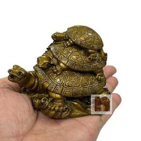 Feng Shui Triple Tortoise Family Showpiece In Polyresin (10 Cms) (1 Pc) – The tortoise, being one of the four celestial animals (among the Dragon, Phoenix, and Tiger), is much revered by the Feng Shui followers as a creator of solidity, sustenance and perseverance.It Is a true symbol of a happy family that is bonded together with love & happiness. Keeping the Tortoise at your main entrance, facing outside is said to be very helpful.