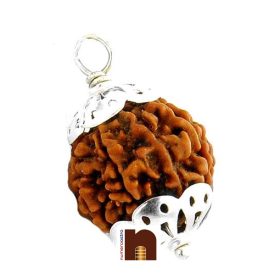 Original & Natural 6 Mukhi Rudraksha Bead Pendant In White Metal With Lab Certificate.