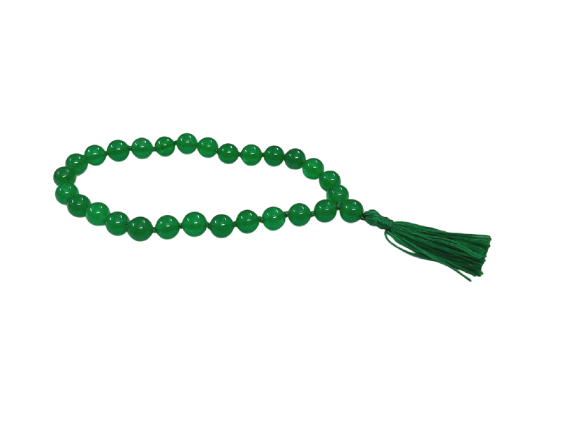 numeroastro Green Agate | Hakik Round Beads Mala for Jaap (8 MM) (27 Beads) (1 Pc)