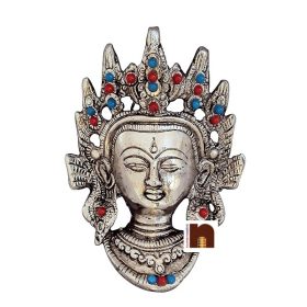 Kirtimukha In Brass With Lord Ganesha Sitting On Top With Panchanaga (9 Cms) (1 Pc) – It is a complex, skilfully executed sculpture. Characterised by perfect symmetry and an unusual silhouette punctuated by space. There is a panchanaga (five-hooded snake) on top of the Kirtimukha’s head and at its base nestles the seated figure of Lord Ganesha. It is the miniscule Ganesha figurine that adds tranquility and balance to the work.