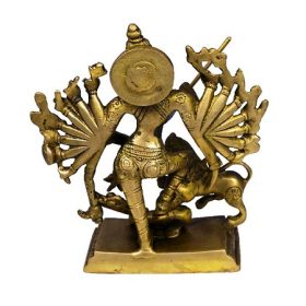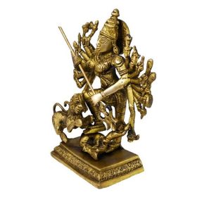 Numeroastro Beautifully Handcrafted Mahishasur Mardini Goddess Durga In Brass- (15 cm)-Mahishasura Mardini is the incarnation of Goddess Durgawho had taken birth to kill the asura king Mahisasura. Mahishasura was the king who ruled the kingdom of Mahisha or Mahishaka. According to Hindu Puranas, Mahisha was the son of an asura King Rambha who had fallen in love with a beautiful female buffalo named Shyamala. Shyamala was a princess who became a water buffalo due to the curse. Rambha due to his magical powers took the form of a male buffalo and by their union Mahisha was born with the head of a buffalo and human body. Mahishasura has the magical power to take the form of buffalo and human according to his wish. In Sanskrit language, Mahisha means Buffalo.