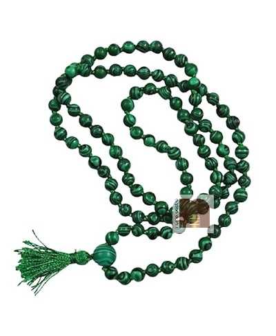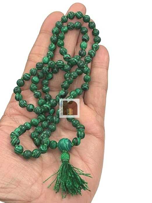 Malachite Mala | Necklace For Men & Women (Hand Knotted) (6 MM Beads) (1 Pc) – Very Useful for Positive Energy Healing, Meditation, Peace of Mind, Jaap, Prayer, Balancing & Concentration. For Spiritual Growth, Spirituality, Awareness, And Wisdom.