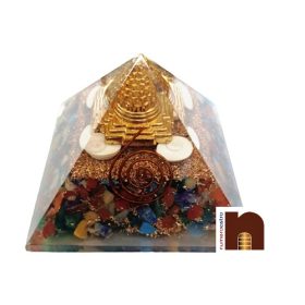 Very Beautifully Handcrafted Orgone Pyramid With Ashtadhatu Shri Yantra & Gomti Chakra Along With Golden Colour Copper Powder.