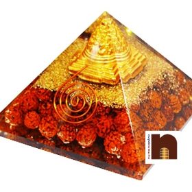 Very Beautifully Handcrafted Orgone Pyramid With Rudraksha Beads & Ashtadhatu Shri Yantra Along With Golden Colour Copper Powder.