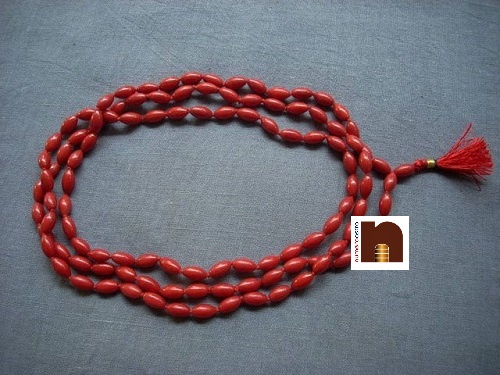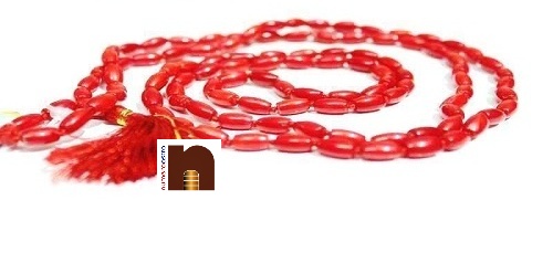 Numeroastro Genuine & Natural Red Coral/Moonga Oval Shape Beads Mala (108+1)-Coral Mala is made of coral beads. Coral is also called as Moonga. This Mala is useful in curing diseases related to blood. It is also used in Sadhanas or Worshiping of Lord Hanuman, Lakshmi and Ganesh. For patients who are anemic this is very helpful. It was once said that planet Mars was composed of red coral due to its striations and colourings. Coral Mala is symbol of joy and happiness. It enables the wearer to enjoy happier life. This will calm the emotions and brings peace within the person. It aids in imagination, intuition and visualization. The mystic qualities are very well understood using coral mala. It helps in communication with ancient people and useful in transfer of the knowledge. Coral Mala also aids in regeneration of bone, muscle, spine, blood disorders and also in reproductive systems. It gives protection to children and also increases wisdom. Once it was used to cure madness and also said that it was used to protect sea travellers from storms. This is highly beneficial for those persons whose body can no longer heal on its own. It helps in boosting courage, perseverance, capability to face circumstances and problems.