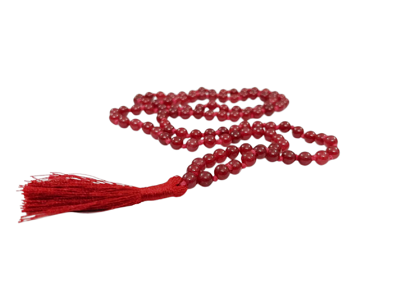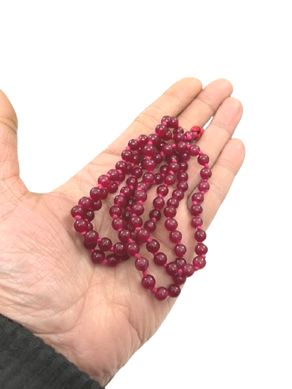 numeroastro Red Hakik | Red Agate Round Beads Hand Knotted Mala For Men & Women ( 6 MM Approx) (1 Pc) – Discover the spiritual elegance of this Red Hakik (Red Agate) mala, featuring 6 mm round beads meticulously hand-knotted into a stunning prayer necklace. The deep crimson hue of the natural agate beads creates a striking appearance, while the matching red tassel adds a traditional finishing touch. Each bead is carefully selected and knotted by hand, ensuring durability and preventing them from clashing against each other. This versatile mala is suitable for both men and women, perfect for meditation practices or as a beautiful piece of spiritual jewellery. The substantial length allows for comfortable wear, while the smooth, polished surface of each bead provides a pleasant tactile experience. This mala serves as both a meaningful spiritual tool and an attractive accessory that complements various outfits.