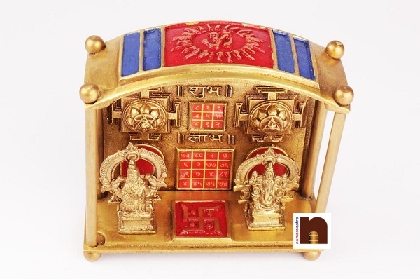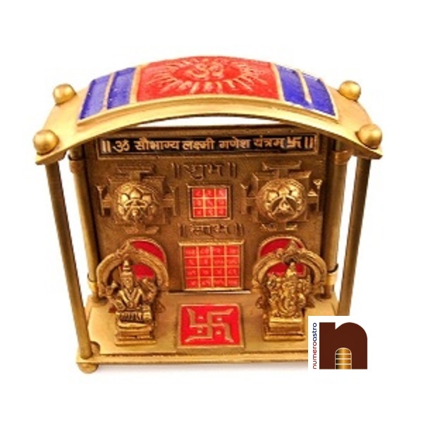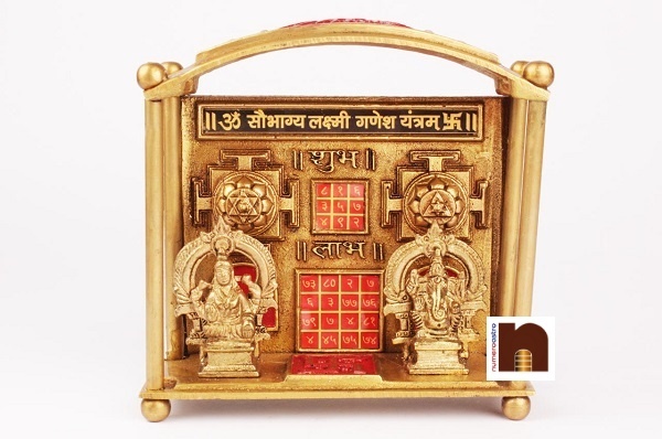 Numeroastro Saubhagya Laxmi Ganesh Yantra Chowki In Brass For Wealth & Good Luck (14 Cms)-Laxmi Ganesh yantra is a combined Yantra of Lakshmi and Ganesh and is called Maha Yantra. Through Ganesh Yantra one attains Siddhi and through lakshmi one is blesses with wealth. Laxmi Ganesh Yantra can be placed in puja Ghar, in cash box, Almirah . Laxmi Ganesh yantra is energised by reciting its Beej mantra 1008 times and also the homa is performed with 108 mantras. Laxmi Ganesh Yantra is very auspicious and is a combined Yantra for worship of Goddess Laxmi & Lord Ganesha. Goddess Laxmi is the Goddess of wealth & prosperity & Lord Ganesha, the God of success in any venture. Hence Laxmi Ganesh Yantra, as the name denotes, is a Yantra for good luck, fame, wealth and increase in income & profits. It is highly recommended that every home shall install Laxmi Ganesh Yantra for the blessings of Lord Ganesha and Goddess Lakshmi. Laxmi Ganesh yantra would not only open the doors of your destiny but would also bless you with all happiness and prosperity. It is a tested yantra, Keep this Yantra in your home or in you purse on any rising moon Sunday, you would be crowned with Success. Businessmen or Shop Keepers shall keep Laxmi Ganesh Yantra in their offices or shops to increase their sales.