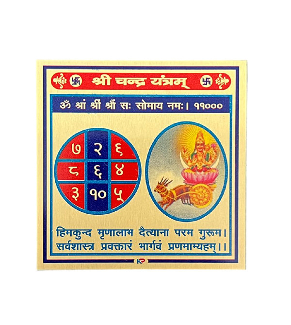 numeroastro Shri Chandra Yantra in Metal Colour Yantra (3 Inches) (1 Pc) – The Chandra Yantra is worshipped to eliminate malefic effects of the Planet. The Yantra helps to gain peace of mind, emotional stability, positive vibrations, boosts confidence and creativity.