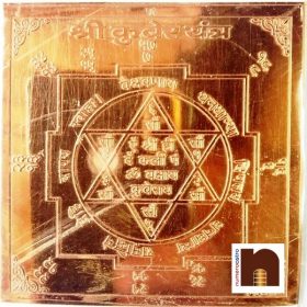 Numeroastro Shri Karya Sidhi Yantra Gold Plated (8 Cms) (1 Pc)-Shree Sarva Karya Sidhi Yantra is believed to be deity of higher intellect among all the deities of wealth, prosperity, protection, success and knowledge for fulfilment of all materia desires. The most powerful yantra set comprising of the qualities of nine exclusive Yantras. Siddh Yantra, success in undertakings, and intelligence, wealth, prosperity and good fortune. He has attained all worldly desires & fulfilling all wishes through inner cosmic power & mental strength. Luck in business, wealth, prosperity and to protect the person from all sorts of dangers. It cultivates power, authority, vigour and to overcome enemies, law suits, success in quarrels and competitions. Free the fear of death, grave dangers, and fatal diseases and makes him courageous and healthy. It helps in improving impoverished conditions of life. It is important to note that the size of the yantra is not important. The important is the matter and design of the yantra. Yantras are great cosmic conductors of energy, an antenna of Nature, a powerful tool for harmony, prosperity, success, good health, yoga and meditation! Yantras consist of a series of geometric patterns. The eyes and mind concentrate at the center of the yantra to achieve higher levels of consciousness. Yantras are usually made out of copper. Place the Yantra facing the East or the North in a clean and sacred altar. Do not let other people touch the Yantra. Periodically wash the Yantra with rose water or milk.
