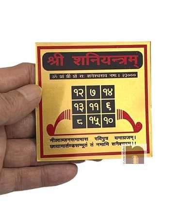 Shri Shani Yantra in Metal (Colour Yantra) (3 Inch) (1 Pc) – When Saturn Is Adverse, It Poses Many Problems. Accident Conflicts, Poor Financial Position Are Few Examples. Under Such Circumstance Shani Yantra Can Bring Peace And Comforts. Shani Yantra Must Be Worshipped When Saturns Sadesati Or Dhayga Is On. The Employees Can Make Progress In Life Only By Grace Of Saturn. Method Of Use: Establish The Yantra With Faith And Devotion And Light Before It Daily A Lamp Containing Mustard Oil. Offer Flowers. Mantra:Om Praang Pring Praung Sah Shanaye Namah.